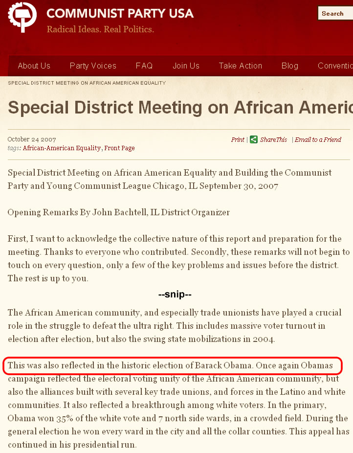 Rub the communists face in their clumsy attempt at deception. Email this post to every patriot you know. Also send it to any honest Democrats in your circle of friends or colleagues and ask them what they think of this blatant attempt to hide the Communist Party's ties to the President.